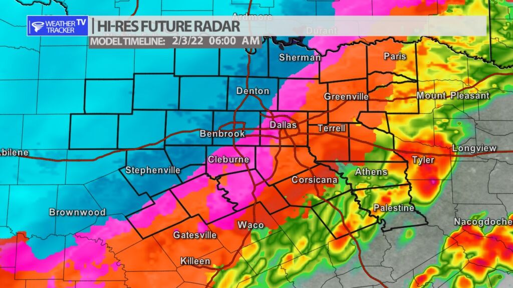 The details and timing of our impending winter storm in North Texas have not changed much overnight. Rain will develop as we go through the day on Wednesday – some heavy rain is possible. An Arctic front will also be pushing through North Texas. Temperatures will be dropping through the day. As temperatures hit and drop below 32 degrees – first in our northern Red River counties and then eventually the Metroplex – the rain will transition over to a freezing rain. Freezing rain then continues all of Wednesday night and into parts of Thursday in the Dallas – Fort Worth area. The freezing rain will transition over to a bit of a wintry mix Thursday afternoon before ending. Northwest of the Metroplex there is a better opportunity of accumulating snow. Roadways will be slick and hazardous and any travel will be very difficult on Thursday. Ice storms unfortunately always bring a chance of power disruptions. Make the necessary plans today for you and your family for the possibility of a power disruption and also the hazardous travel conditions.