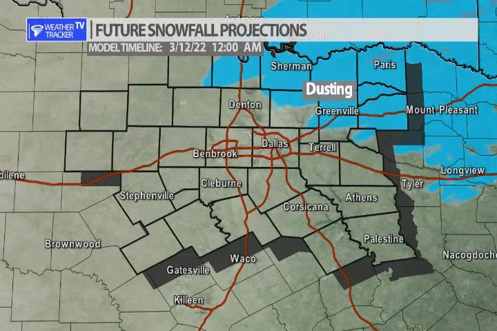 An Arctic cold front arrives in North Texas tonight. A piece of Jetstream energy will also arrive by early tomorrow morning. Light scattered showers are possible and those showers will mix with sleet and some snow as we go through the day. Right now, the latest data continues to show all of the precipitation will be light. Anytime you have wintry precipitation you can never rule our a few slick spots on the bridges and overpasses so use caution on all of the area roads tomorrow. The activity tappers off by Friday evening. No real accumulation is expected, but a dusting may be possible on grassy surfaces near the Red River Valley.