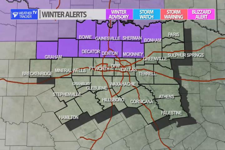 From William Cole: A Winter Weather Advisory has been issued in the Weather Tracker TV DFW coverage area from 6:00 AM Fri until 6:00 PM Friday for Delta, Erath, Hamilton, Hopkins, Hunt, Lamar, Palo Pinto, Parker, Rains & Stephens Counties in North Texas.