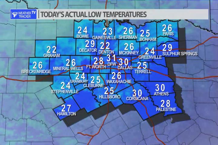 It was a frosty cold start to your Wednesday morning across North Texas. Actual lows this morning were below freezing with 20’s for most of us.