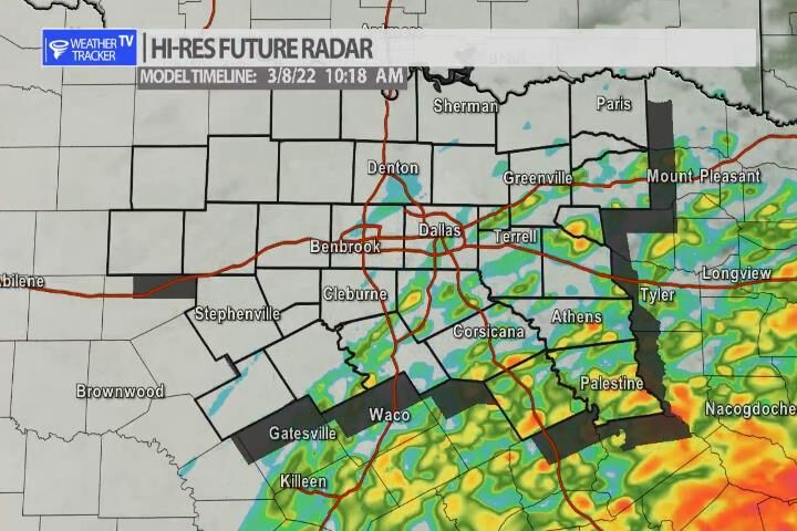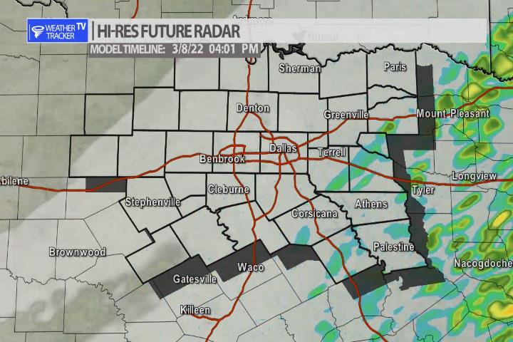 Scattered showers will be possible into the mid afternoon across North Texas. Most of the activity will be very light – mainly making for damp roads. Rainfall amounts in your back yard rain gauges will not be more than a trace or a couple of hundredths of an inch for most.