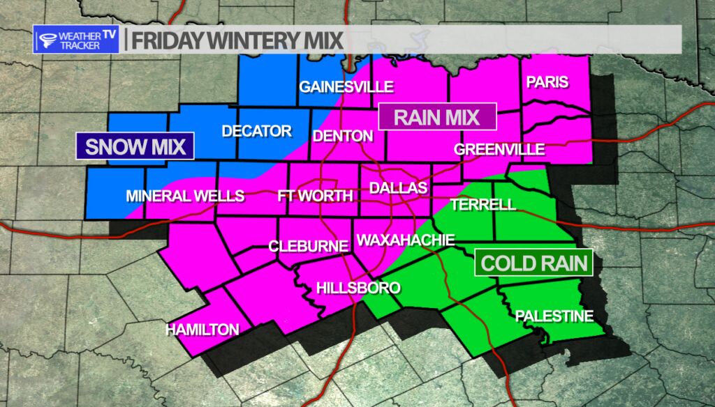 The next cold front and jet stream storm system arrive for North Texas late Thursday into Friday. Chillier air will be in place from the front and lift from the upper level storm system. A chilly precipitation develops across the area. The latest data continues to suggest a cold rain mixed with some sleet and possibly for our northwestern counties – a cold rain mixed with some snow. The way it looks right now – other than wet roads – no travel impacts are anticipated and no accumulation is anticipated. It’s still several days away and the data will continue to change some. I’ll keep you updated with the latest here on the app and on the channel.