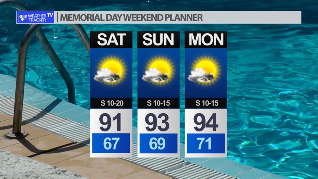 The North Texas Memorial Day Weekend forecast can be summed up very easily – mostly sunny and hotter. The humidity will also be high so heat index values will be creeping up near 100.