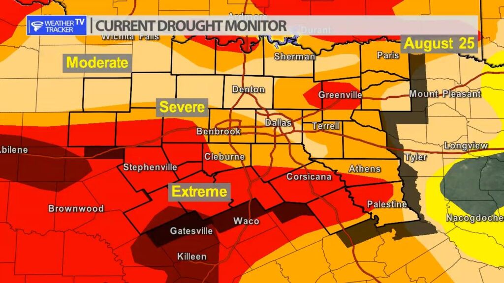 The updated Drought Monitor was released for this week and there was some improvement across North Texas – specifically in Dallas county where we saw the historic rainfall. Other areas still under severe to extreme drought criteria. The good news is that more rain is on the way next and we should continue to put a dent in the drought.