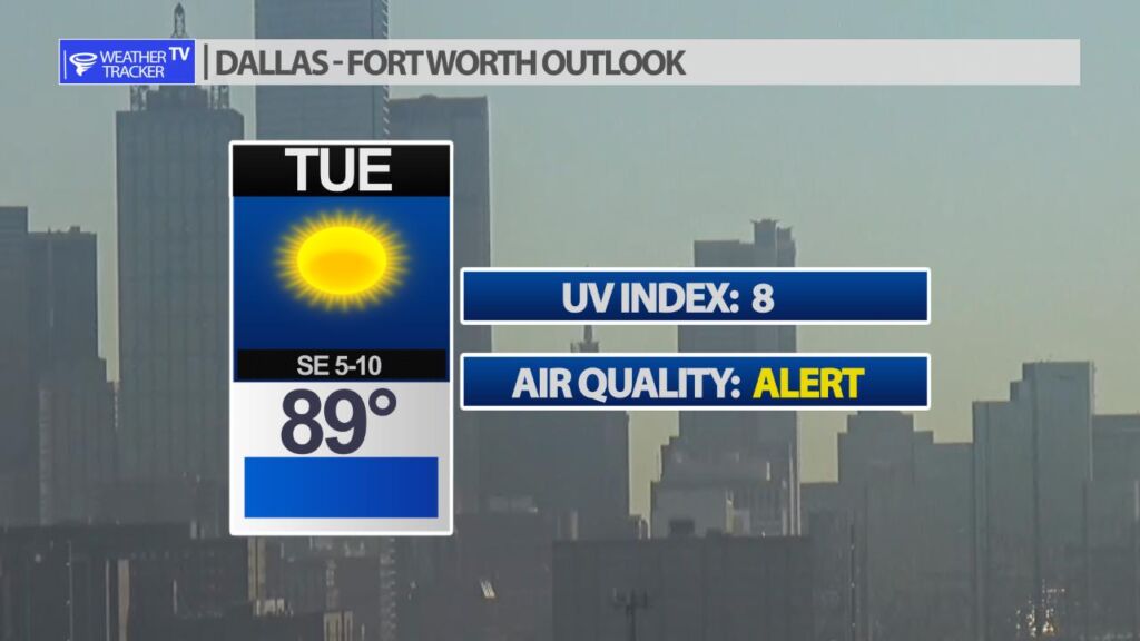 After a cool start to the morning expect a sunny and warm afternoon in the Metroplex with a high near 90. An air quality alert remains in effect.