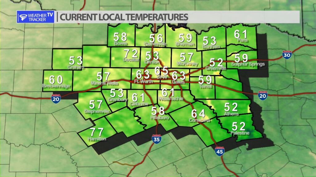 Cool and fresh out the door this morning with temperatures in the 60’s in the Metroplex. 50’s elsewhere across a good part of North Texas.