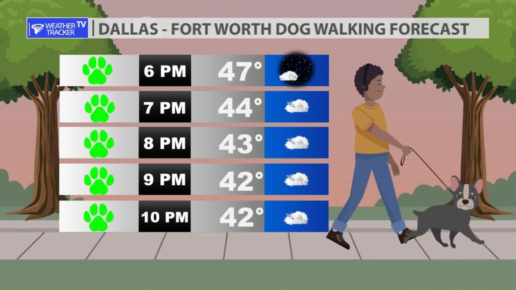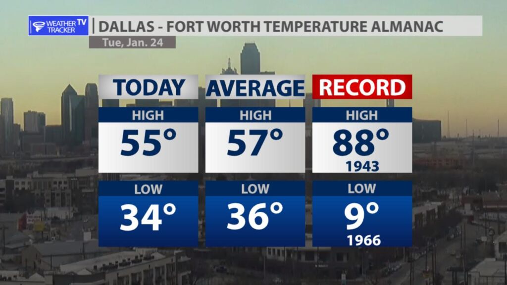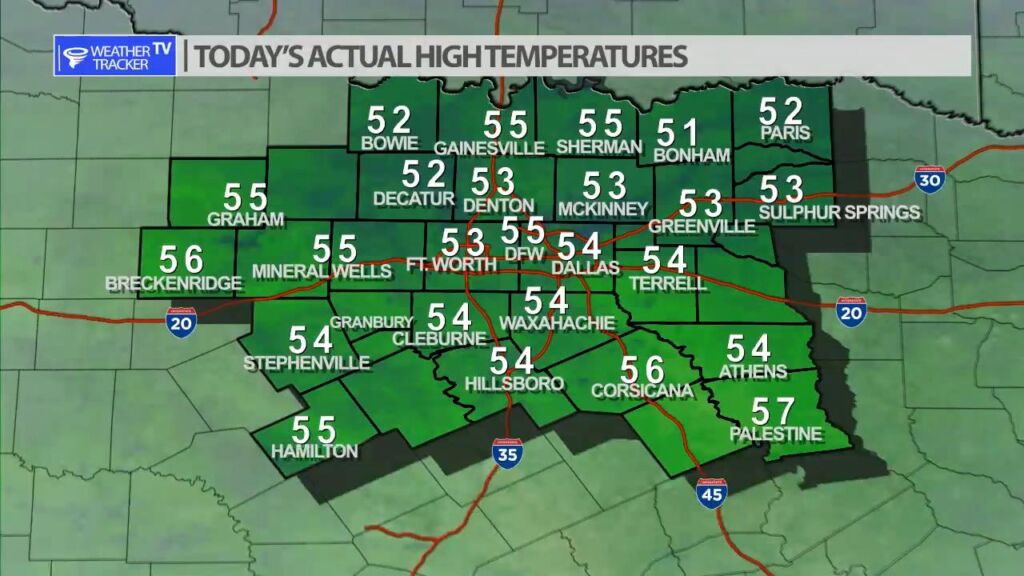 It was a sunny but cool afternoon across North Texas with actual highs a mix of 50s.