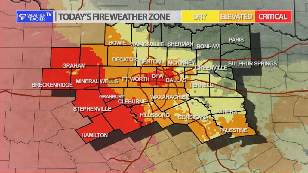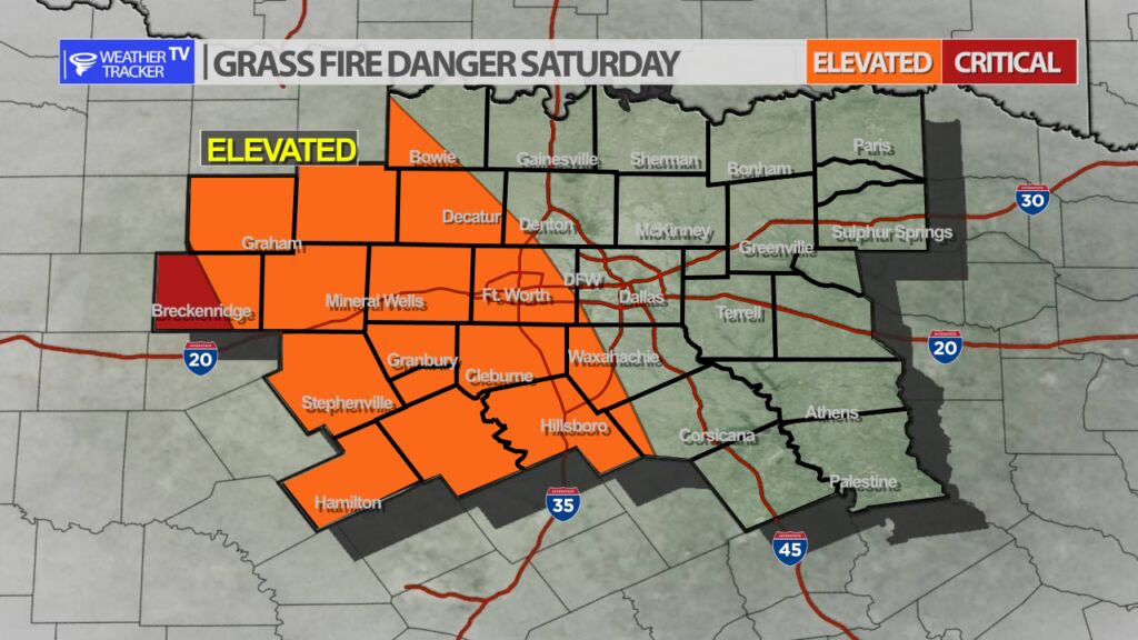 Westerly and southwesterly winds will continue to usher in a dry (less humid) airmass into North Texas this afternoon. The dry airmass along with all of the dormmate winter kill vegetation will aggravate grass fire concerns this afternoon. Grass fire danger will be elevated roughly from the I-35 corridor to the west from Noon through 6 PM.