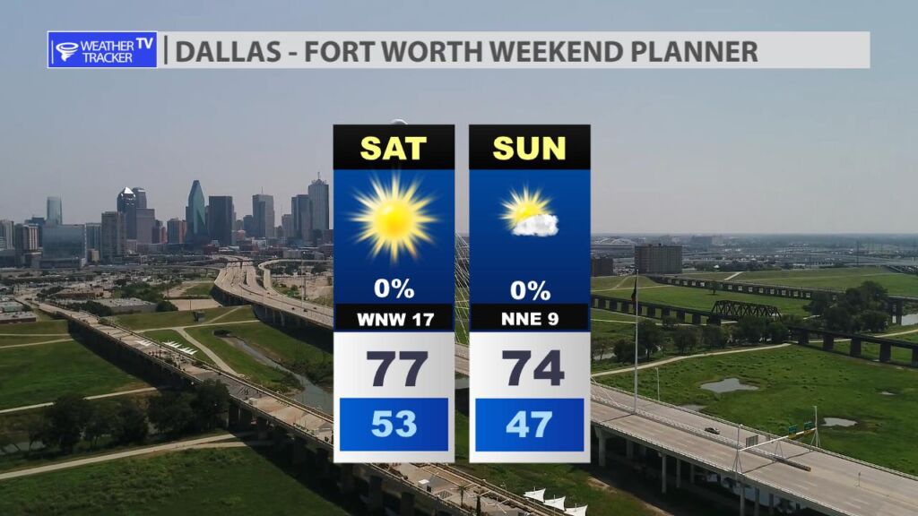 The weekend forecast across North Texas look great. Plenty of sunshine and highs in the 70s. Mornings will be chilly with overnight lows dipping into the 40s and 50s.