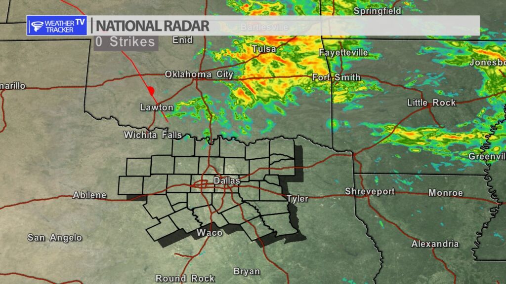 Large area of rain is ongoing up in Oklahoma. A few very light showers have been possible this morning along the Red River Valley. A light showers will remain possible this today – mainly from I-35 east.