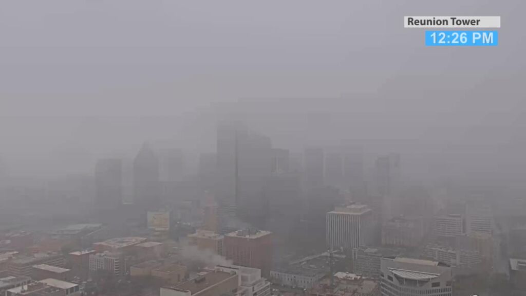 It’s cloudy in the Metroplex for your lunch hour with areas of drizzle. Temperatures have not moved much through the 50s.