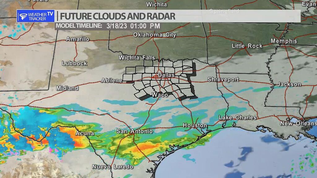 It’s going to be a mostly cloudy day across North Texas. A sprinkle or two is possible in our southern counites. A few light showers will be possible further south into central Texas and Hill Country.