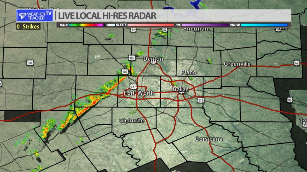 7:30 AM- A thin line of showers will be moving through the Metroplex this morning. A brief shot of moderate rain is possible. Then we are dry the rest of the day. -William