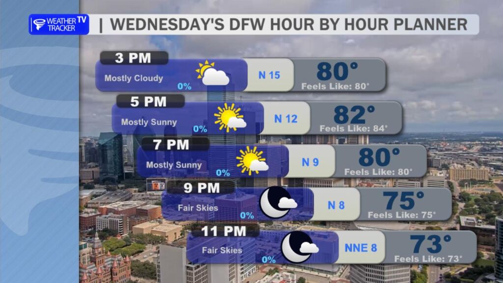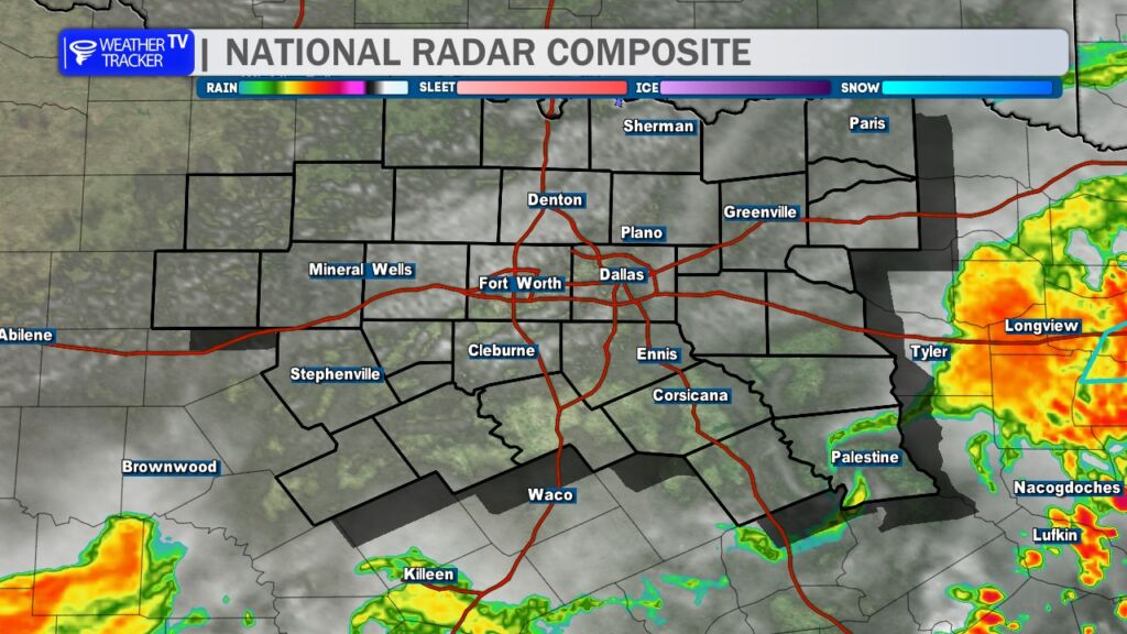 1PM: The morning rain and thunderstorm activity is now ending across North Texas with clearing skies. Enjoy Fall like temperatures this afternoon.