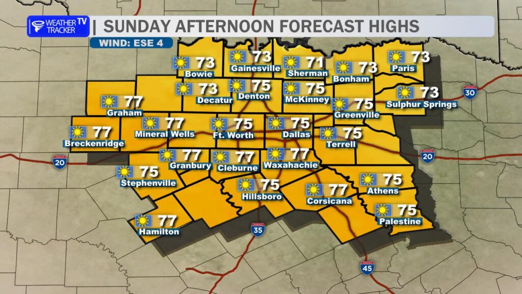 • Sunday’s Weather: Enjoy fall-like conditions with highs in the 70s and plenty of sunshine.