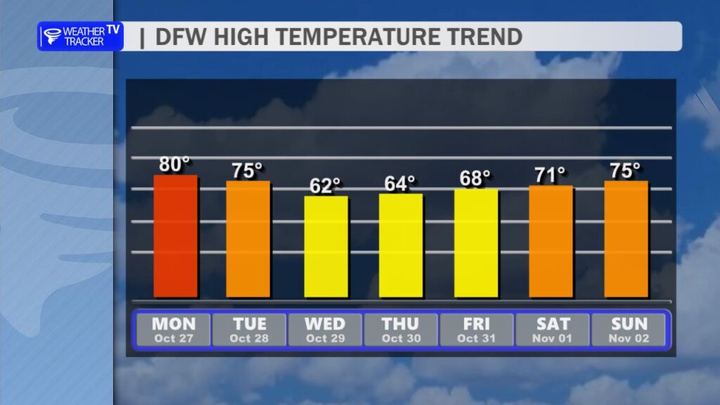 If you enjoy comfortably warm temperatures, sunny skies, and light winds, make the most of this afternoon. A windy cold front arrives tomorrow (Tuesday), shifting winds from the north with peak gusts of 30 to 40 mph. There’s a low-end 30% chance of a few wind-swept showers from late morning into the afternoon, though little meaningful rainfall is expected. The front ushers in cooler air, with midweek daytime highs dropping into the 60s and morning lows in the 40s. By Wednesday morning, wind chills could dip into the 30s, so it may be time to dust off the winter coat.