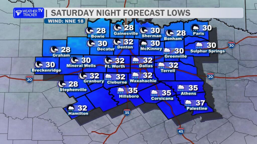 - Widespread freezing temperatures are likely across North Texas – especially near and North of I-20.