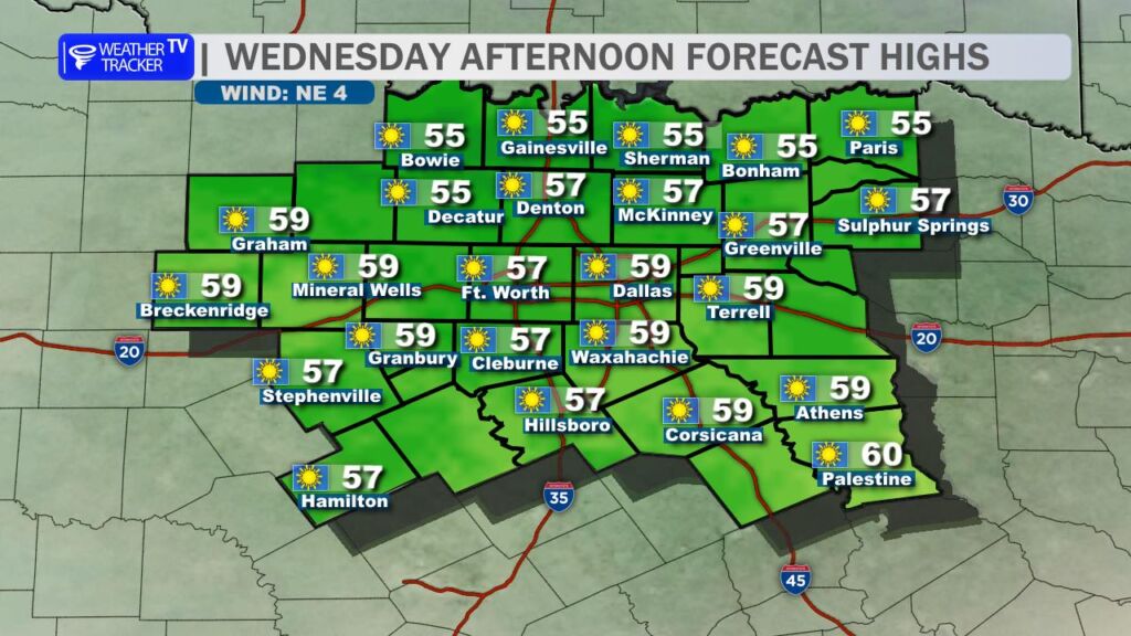 Good morning, North Texas! That cold front that swept through last night means you’ll definitely want to grab a jacket before heading out today. We’re waking up to crisp, chilly air with temperatures starting in the 40s across the area.