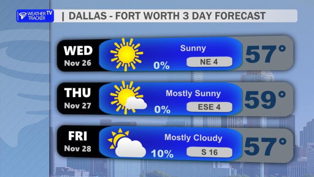 So enjoy the sunshine while it lasts, North Texas – and maybe keep the coat handy a little longer than usual this holiday weekend. Have a wonderful and safe Thanksgiving!