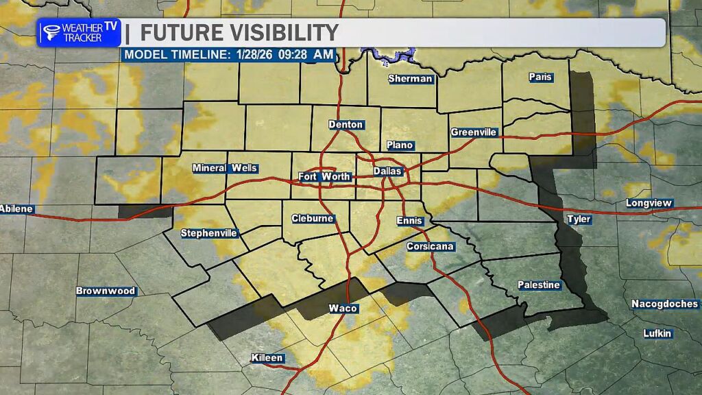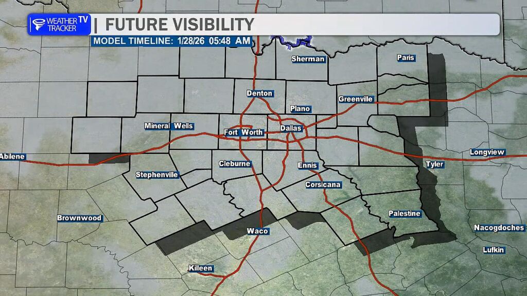 From William Cole: A Freezing Fog Advisory has been issued in the Weather Tracker TV DFW coverage area from 3:00 AM Wednesday until 11:00 AM Wednesday for Collin, Cooke, Dallas, Delta, Denton, Ellis, Erath, Fannin, Grayson, Hood, Hopkins, Hunt, Jack, Johnson, Kaufman, Lamar, Montague, Palo Pinto, Parker, Rains, Rockwall, Somervell, Stephens, Tarrant, Van Zandt, Wise & Young Counties in North Texas.