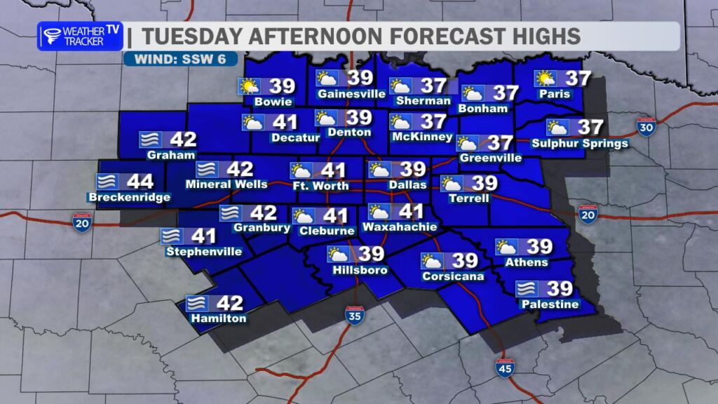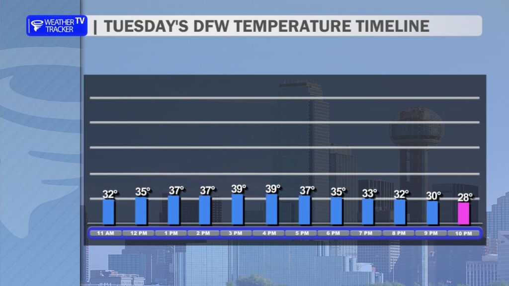 The good news is we will climb back above freezing this afternoon. High temperatures should reach around 40 degrees in the Metroplex under mostly sunny to partly sunny skies. That sunshine, combined with slightly milder air, will help improve road conditions through the afternoon as ice continues to melt on untreated surfaces.