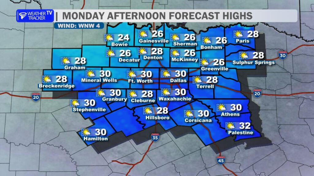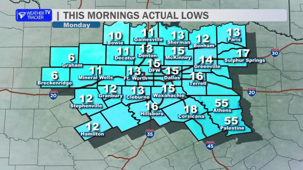 Tonight is another bitterly cold night with lows dipping back down into the teens mostly across North Texas.