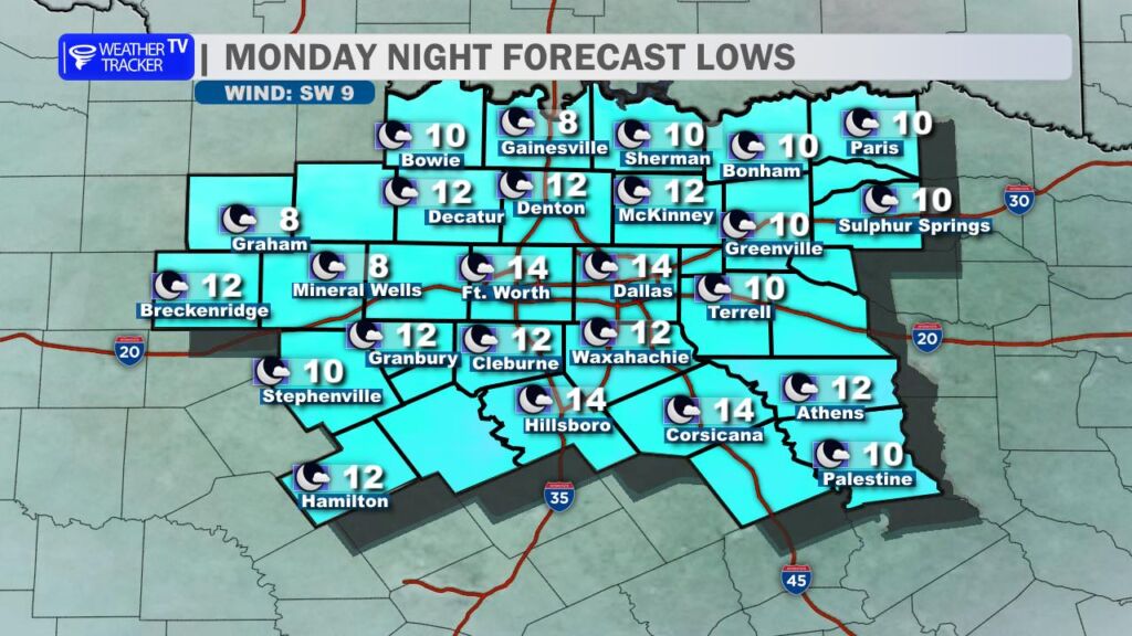 Monday Night Forecast for the Dallas – Fort Worth Metroplex