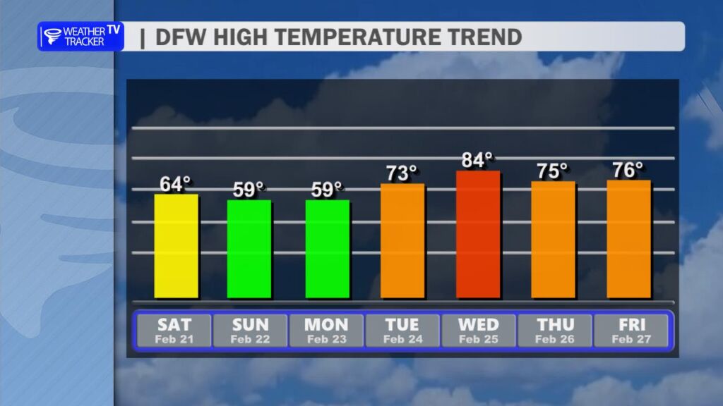 Looking ahead, a big warm-up is on the way. Temperatures steadily rebound through early next week, with highs surging back into the 80s by Wednesday. That warming trend, combined with dry conditions and increasing winds, may elevate wildfire concerns across parts of North Texas. It’s something we’ll be monitoring closely.