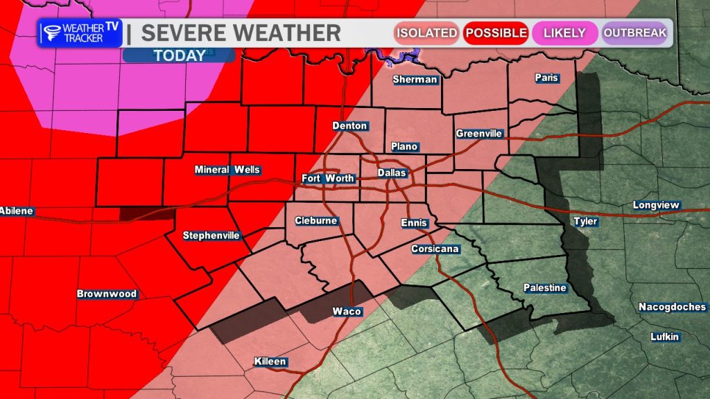 Severe potential ramps up this evening as a line of storms pushes into our western counties from the Big Country.