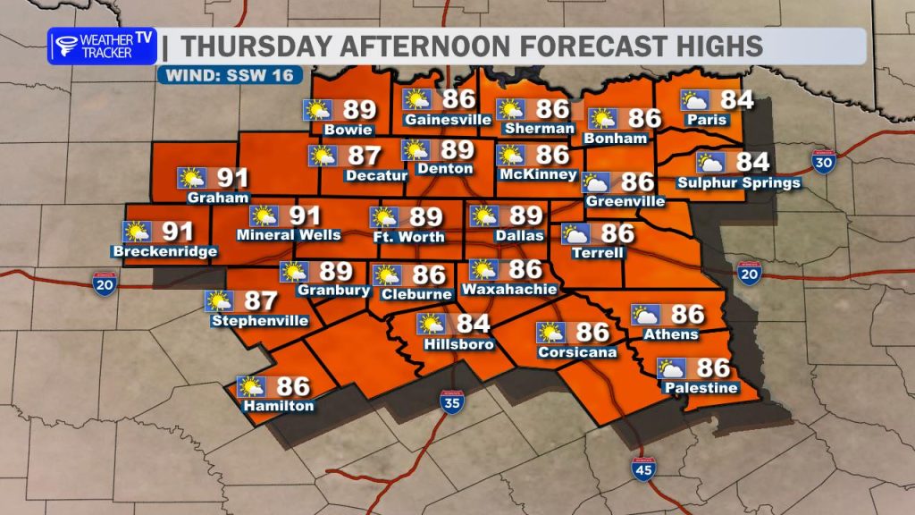 - The Highs: Expect temperatures to push into the upper 80s, with some spots hitting 90°.