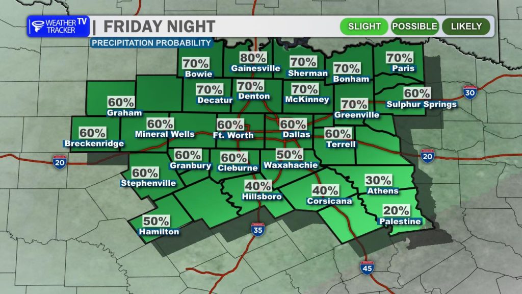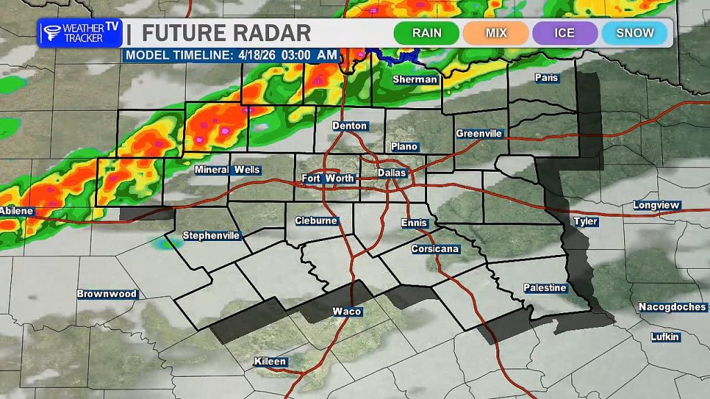 - The Arrival: The front is progged to reach our northwestern counties around 1 AM to 2 AM and sweep through the DFW Metroplex between 3 AM and 6 AM. * The Threat: A line of showers and thunderstorms will accompany the boundary. While the overall severe risk is on the lower end, a few storms could become “robust.” Our primary concern will be damaging wind gusts up to 60 mph and perhaps some small hail.