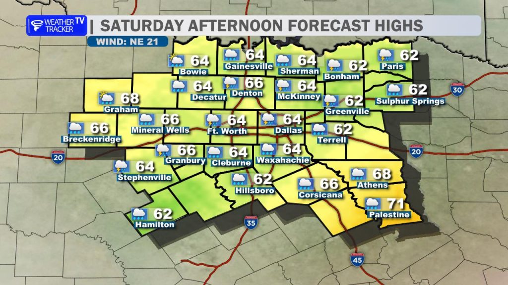 - Lingering Rain: Expect showers and isolated thunderstorms to linger, especially south of I-20, through Saturday afternoon.