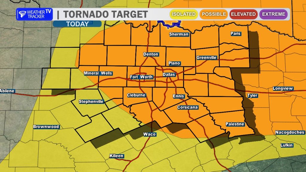 The Storm Prediction Center has upgraded the Dallas – Fort Worth Metroplex to a Moderate Risk (Level 4 of 5) for severe weather today. This upgrade is driven by a heightened threat for destructive, very large hail – potentially exceeding 3 inches in diameter – along with damaging wind gusts and the potential for a couple of tornado warnings.