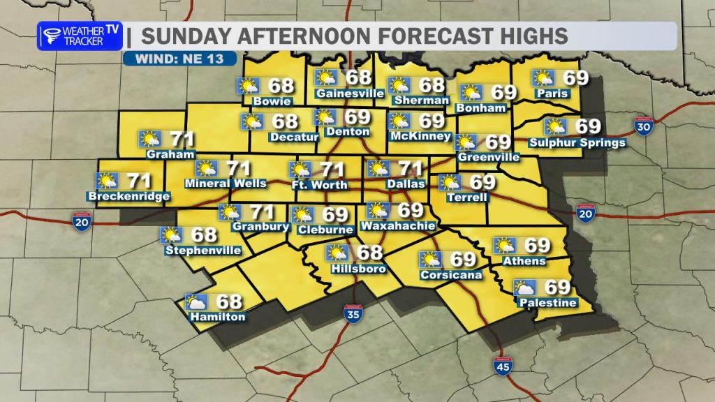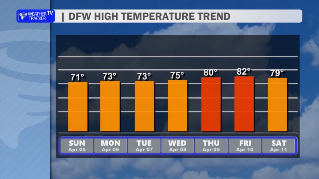 Tonight’s Outlook: If you have evening plans, keep a jacket handy. We’re looking at another chilly night as skies remain fair and winds die down. Lows will dip back into the 40s for most, with some spots in the Metroplex hovering right around 50°.