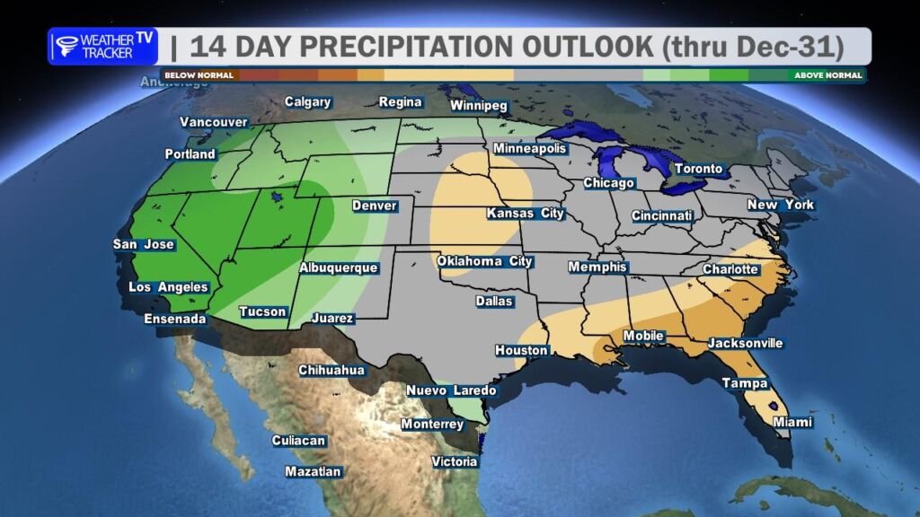 As of now, the entire period through Christmas remains dry – no precipitation is expected to interrupt your holiday plans.