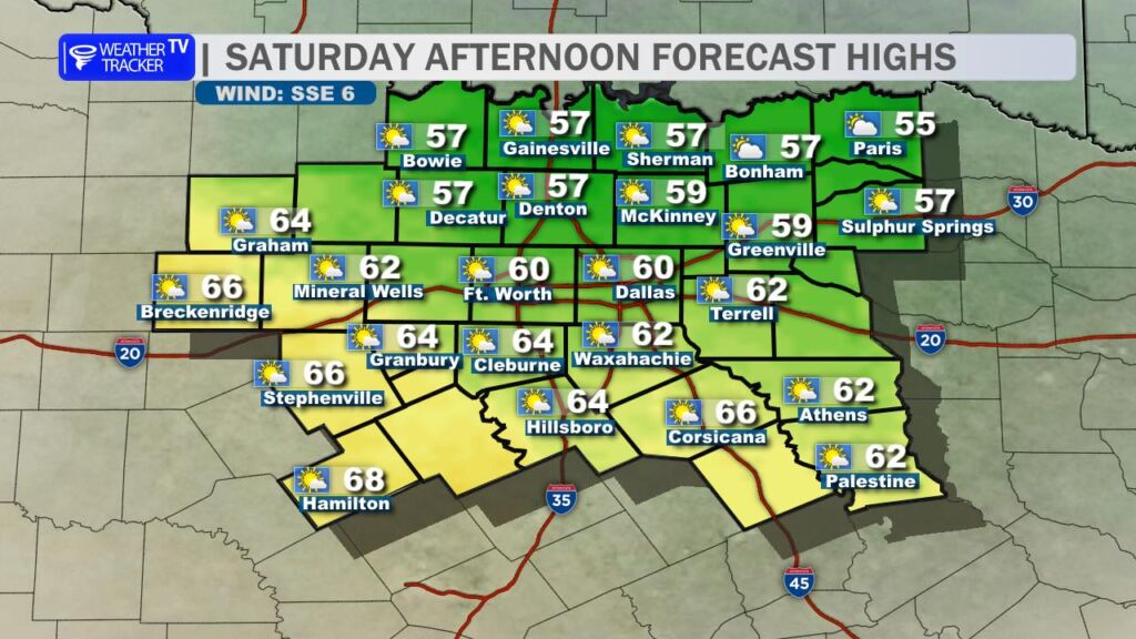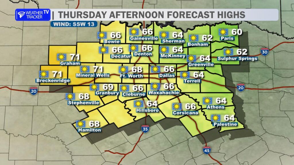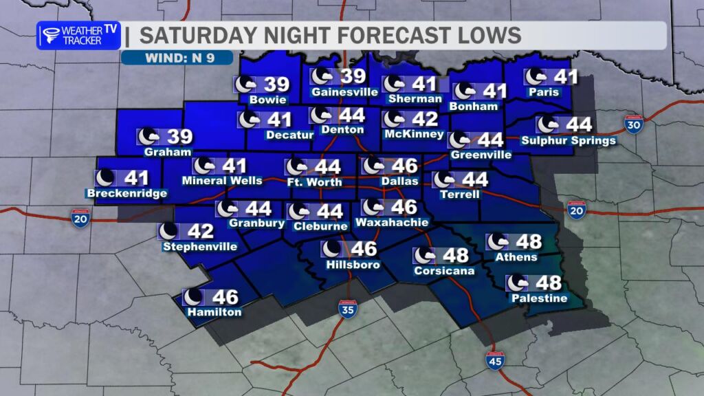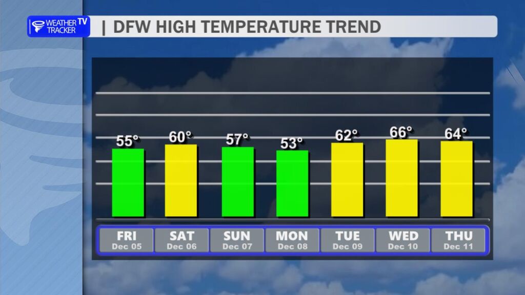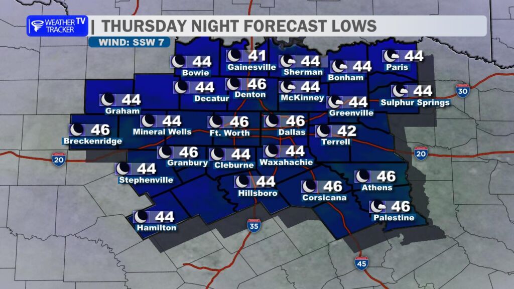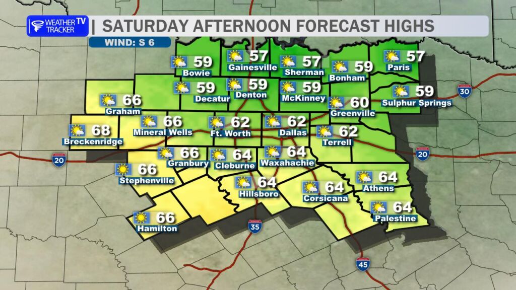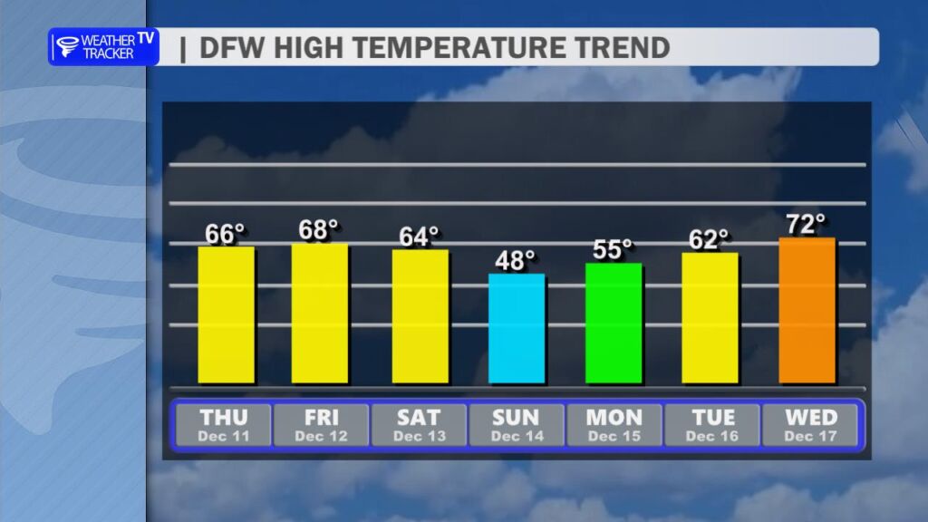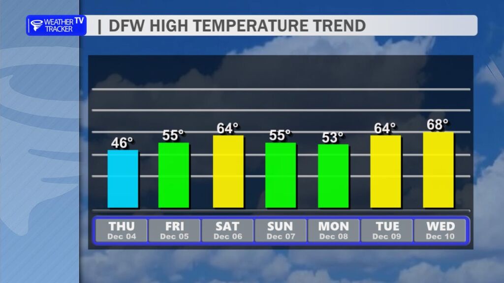 Looking ahead, those pleasant 60s for highs will stick around through Saturday. But keep an eye on Saturday evening: a strong cold front is set to sweep through the area, ushering in much colder air. Sunday will feel sharply different, with highs struggling to reach the upper 40s to near 50 degrees – a classic North Texas chilldown. There’s also a slim chance for a couple of light showers in our southeastern counties late Saturday night as the front passes.