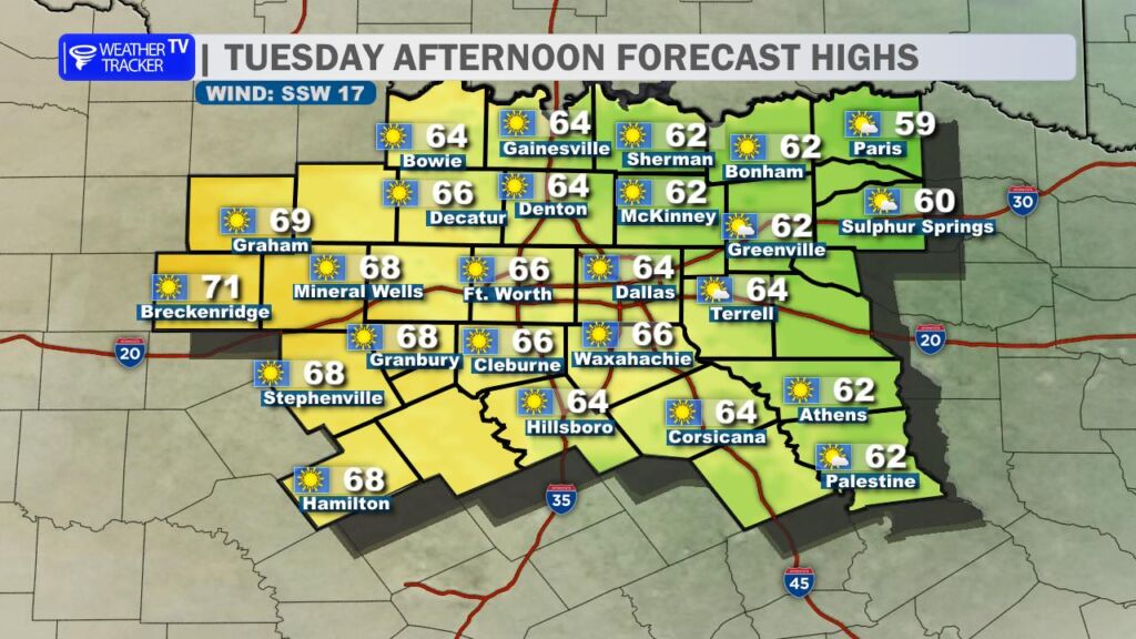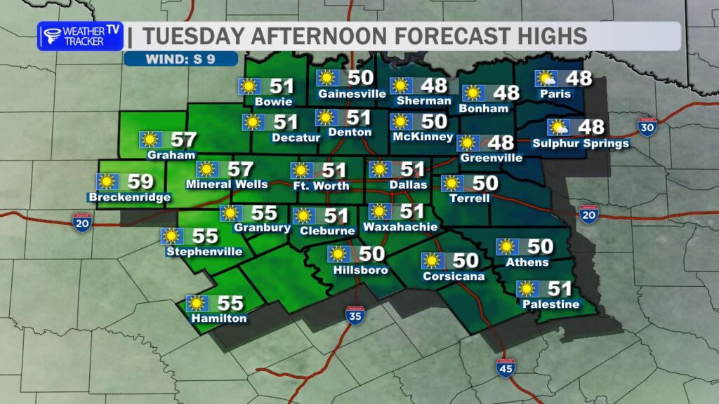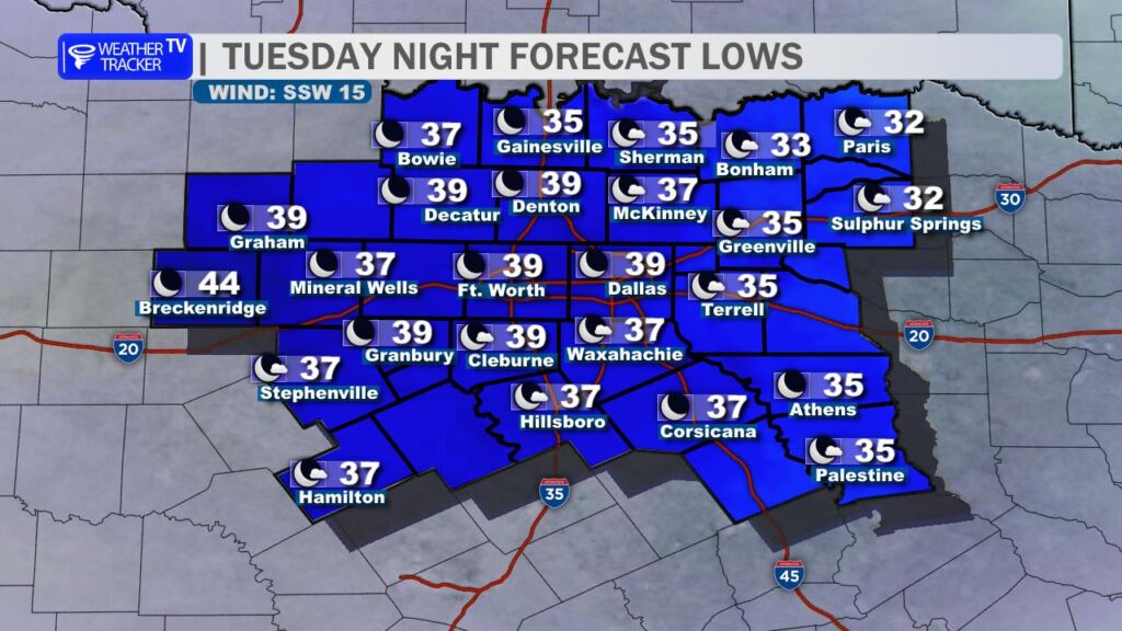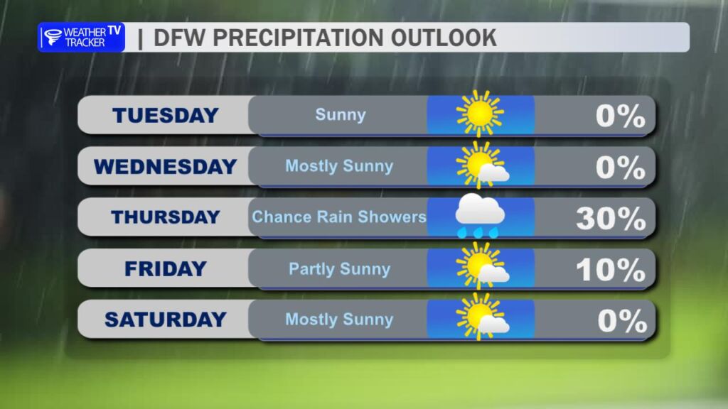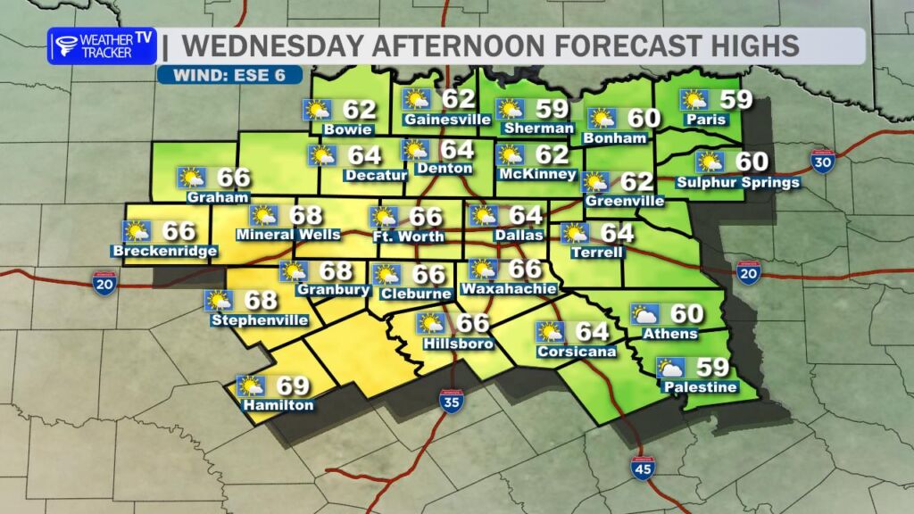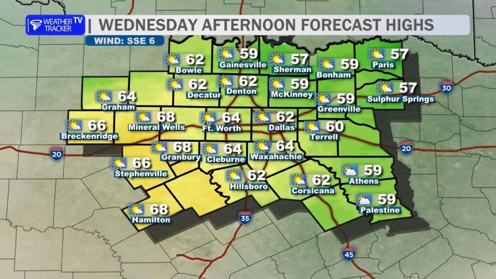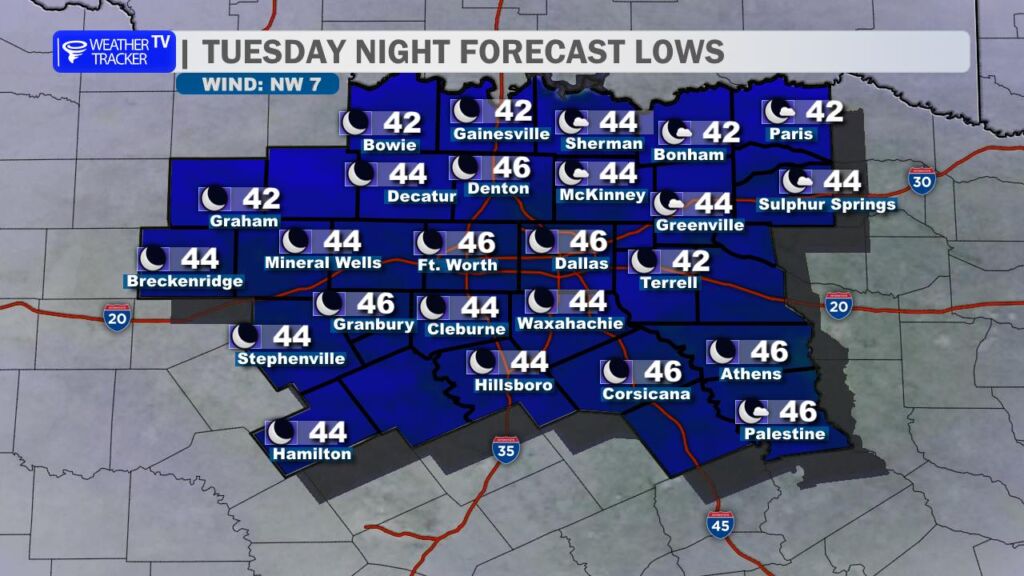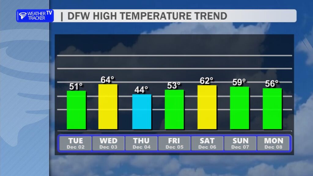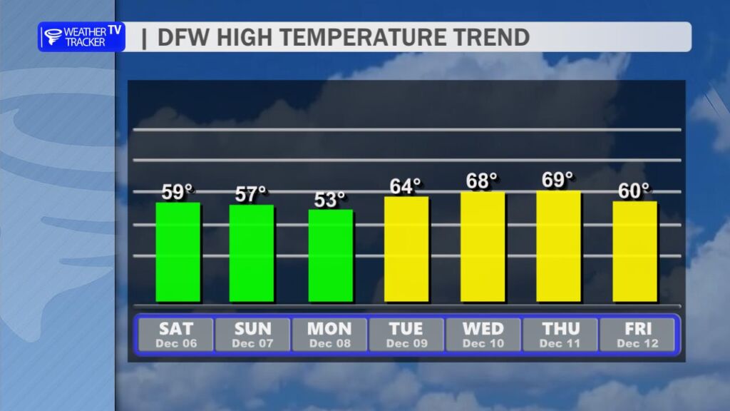 Looking ahead, those pleasant 60s for highs will stick around through Saturday. But keep an eye on Saturday evening: a strong cold front is set to sweep through the area, ushering in much colder air. Sunday will feel sharply different, with highs struggling to reach the upper 40s to near 50 degrees – a classic North Texas chilldown. There’s also a slim chance for a couple of light showers in our southeastern counties late Saturday night as the front passes.