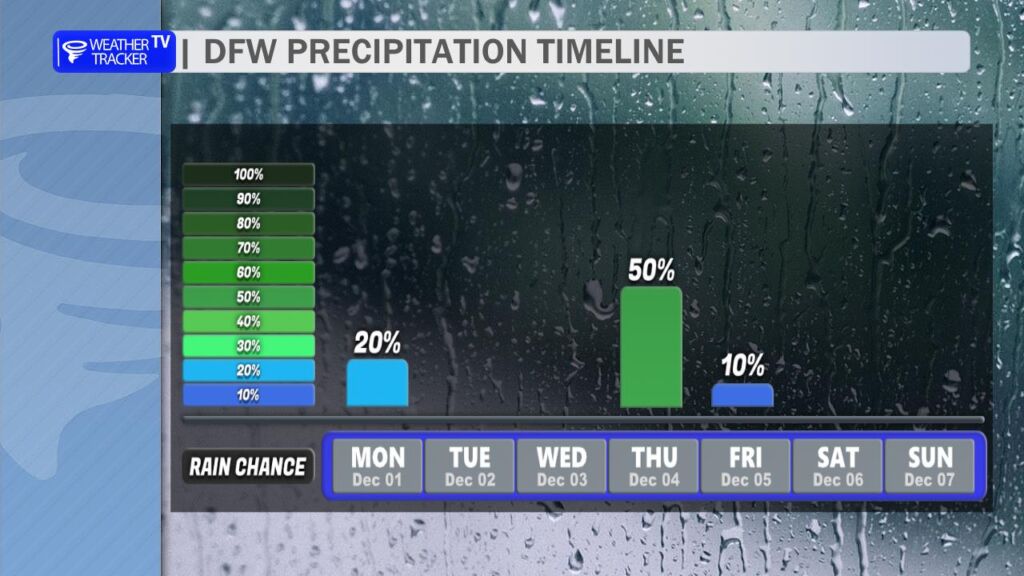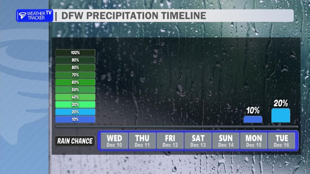 For a quick glance deeper into the extended forecast through the holidays: the latest guidance from the Climate Prediction Center points toward above-normal temperatures and generally dry conditions for North Texas heading into Christmas. That means we’re likely looking at milder weather for holiday travel and gatherings, with lower odds of any wintry precipitation. Of course, long-range forecasts can shift, so stay tuned for updates as we get closer.