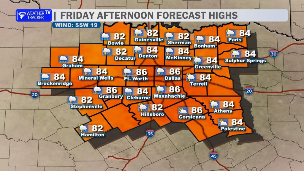 It’s going to be an active start to our Easter weekend across North Texas. Today will be mostly cloudy, humid, and breezy with afternoon highs climbing into the low-to-mid 80s. While a few isolated showers or pop-up storms are possible this afternoon—including for the Rangers home opener—the primary storm threat holds off until this evening and overnight.